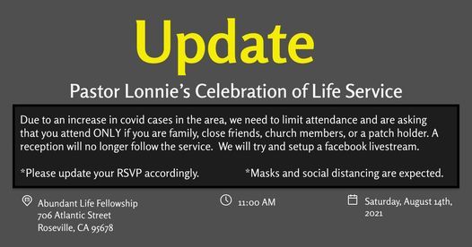 Celebration Of Life Service For Lonnie Nix 706 Atlantic St Roseville Ca 95678 1806 United States 14 August 2021